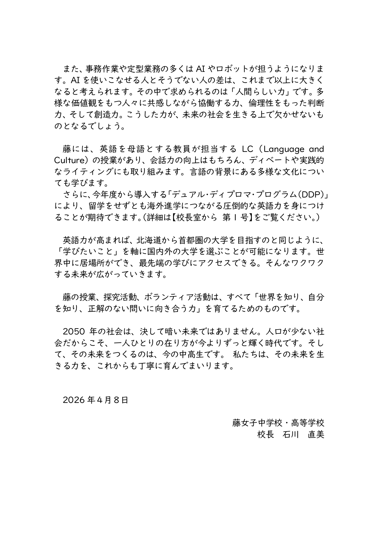 校長室から 第3号(藤はワクワクする世界の入り口)をアップしました
